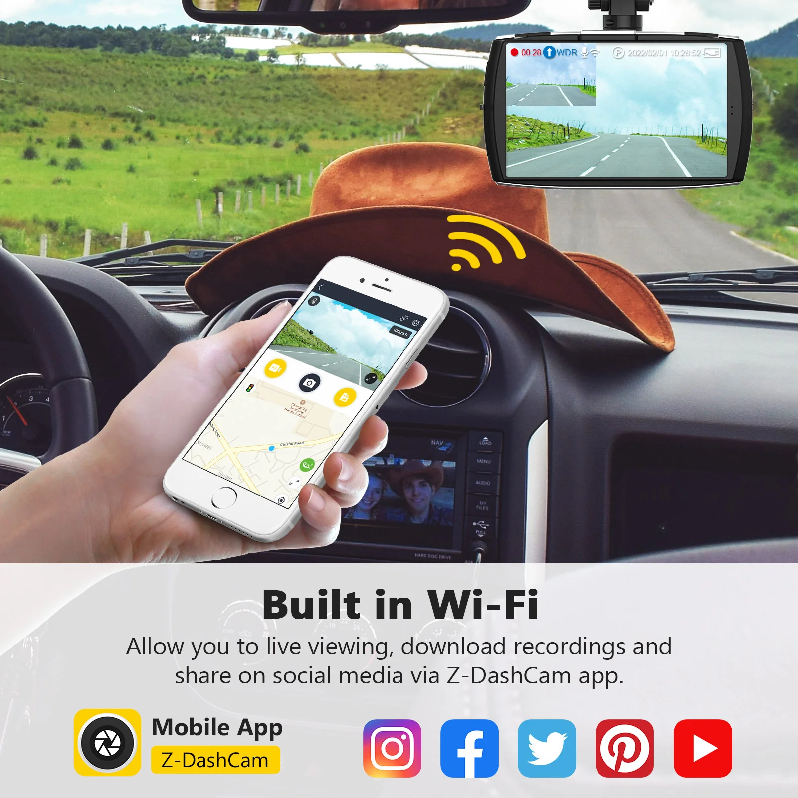 Compatible with Android and iOS, you can use our Z-Dash Cam App to view and manage dash cam recordings and settings instantly on your smartphone. It’s very convenient to view, download and share your footage on social media through our app.